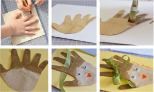 Commencez par dessiner la trace de leur main sur du papier puis passez le relais aux enfants qui pourront décorer au grès de leur imagination.